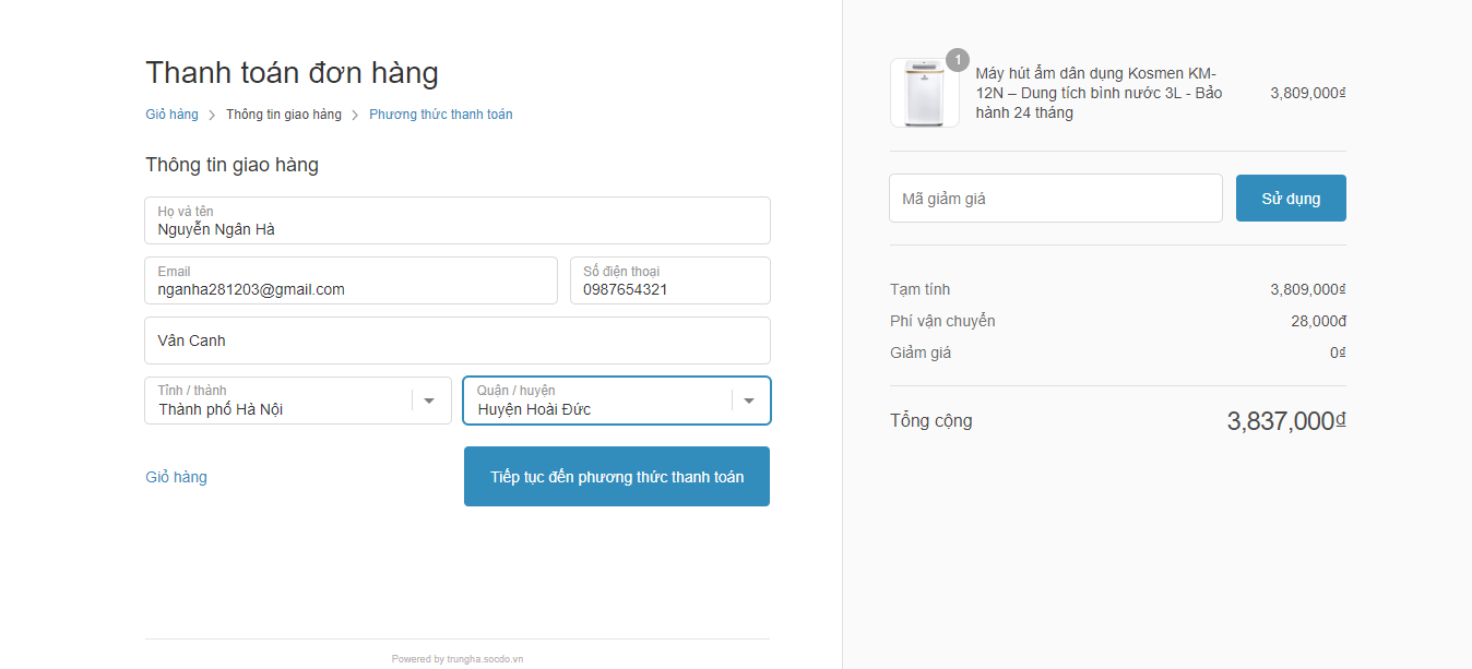 - Với hình thức thanh toán khi giao hàng