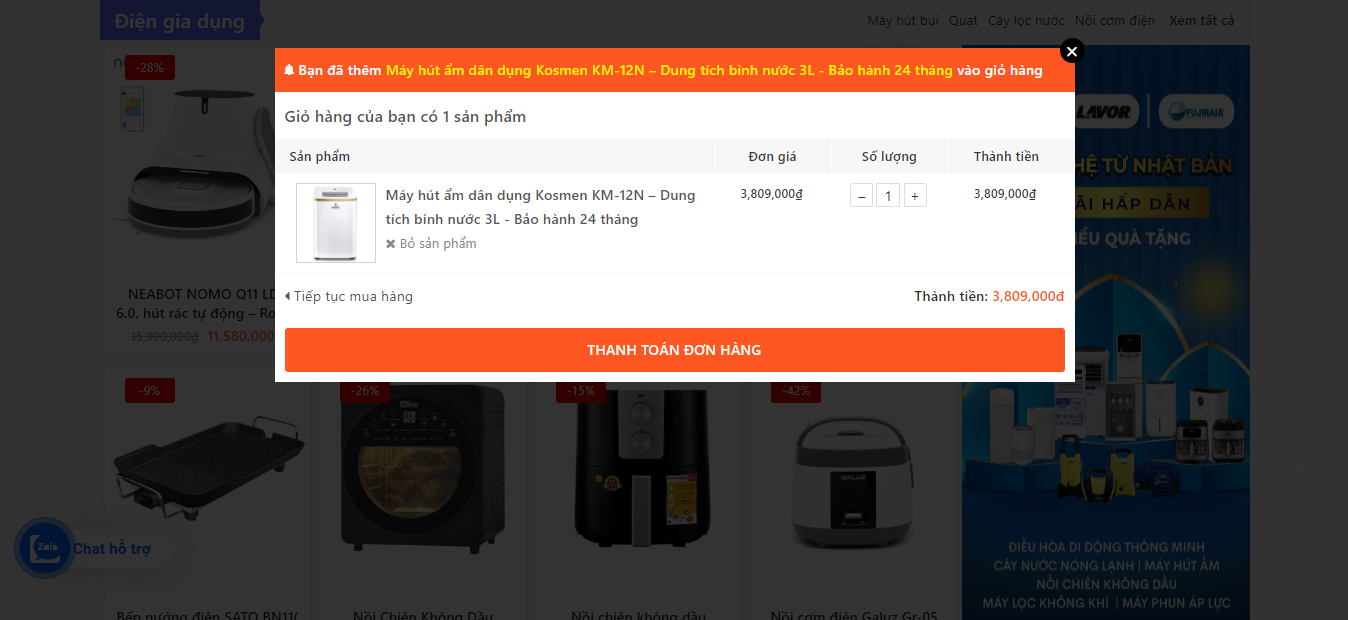 Nội dung chuyển khoản: Tên Khách hàng . nhấn " Hoàn tất đơn hàng" để đặt đơn thành công.
