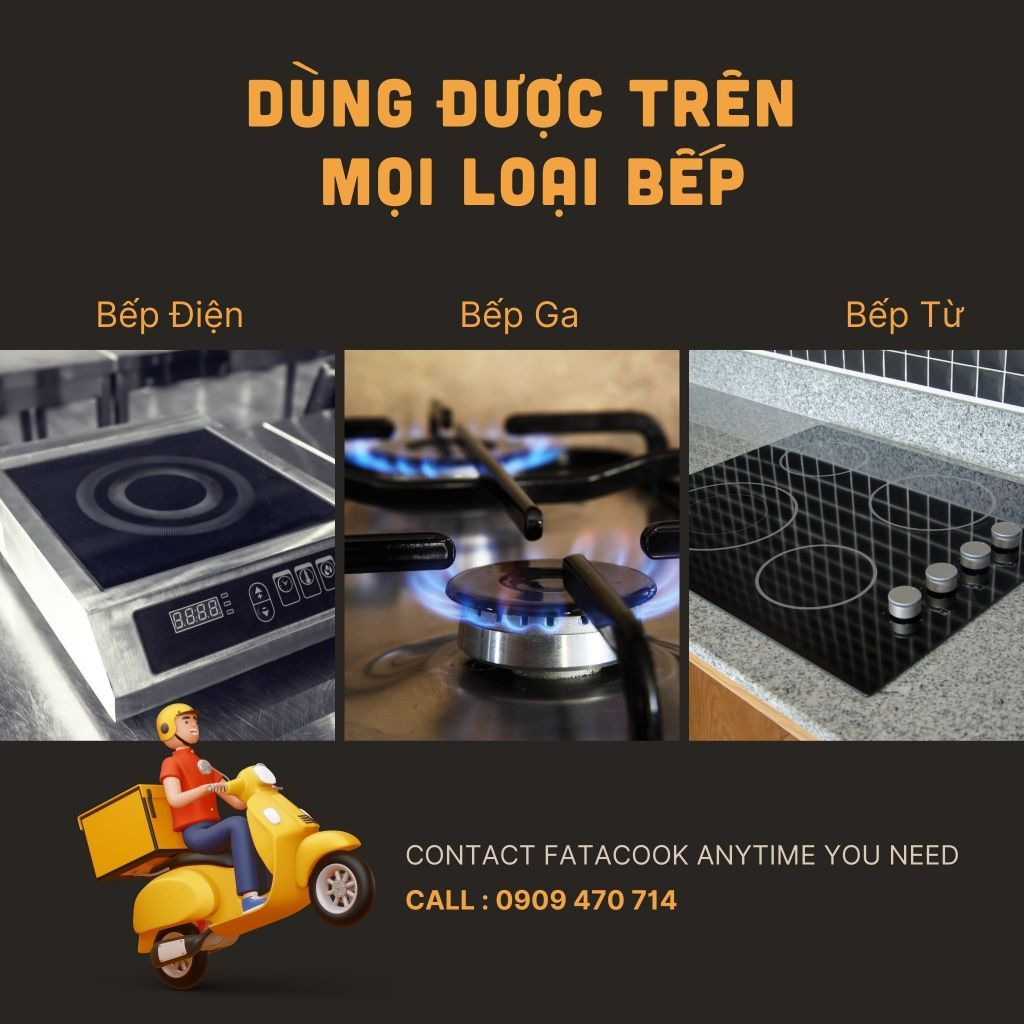 Đáy nồi: Đáy từ, sử dụng trên mọi loại bếp