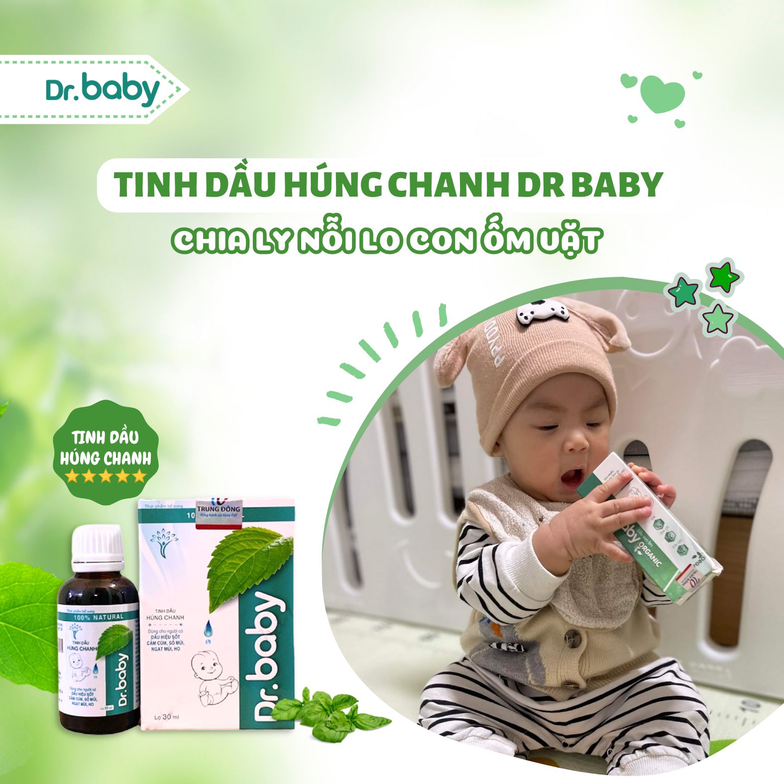 Việc chăm sóc sức khỏe cho bé yêu luôn là ưu tiên hàng đầu của các bậc phụ huynh. Tinh dầu húng chanh Dr. Baby là sản phẩm tự nhiên, được chiết xuất từ cây húng chanh, mang lại nhiều lợi ích vượt trội cho sức khỏe của bé. Với những đặc tính kháng khuẩn, kháng viêm, và hỗ trợ hô hấp, tinh dầu húng chanh Dr. Baby là lựa chọn hoàn hảo cho những ai mong muốn bảo vệ và chăm sóc bé yêu một cách tự nhiên và an toàn.